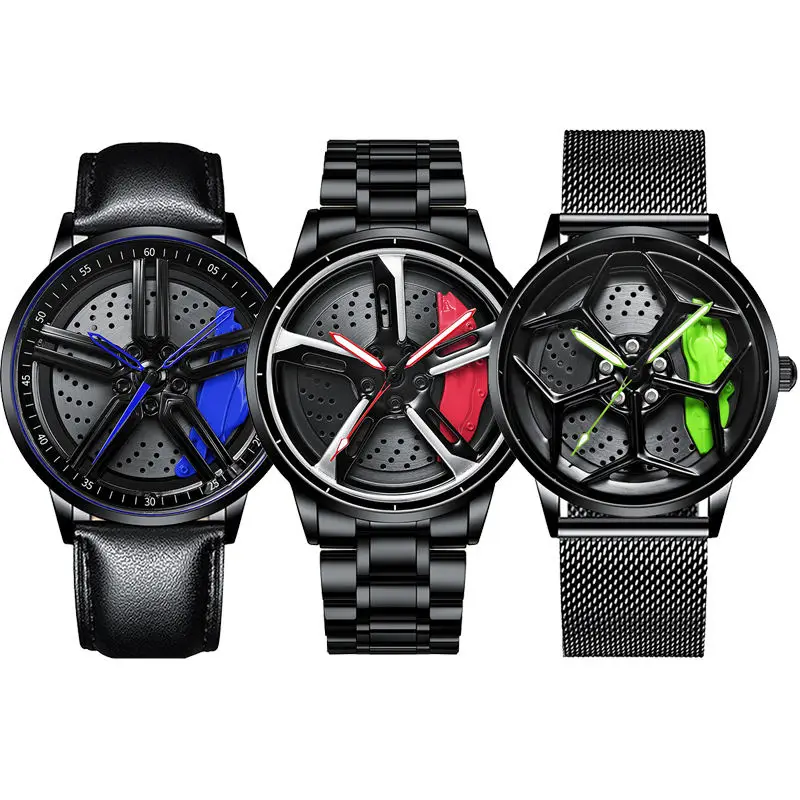 Real 3D Dial Quartz Stainless steel Wheel watch