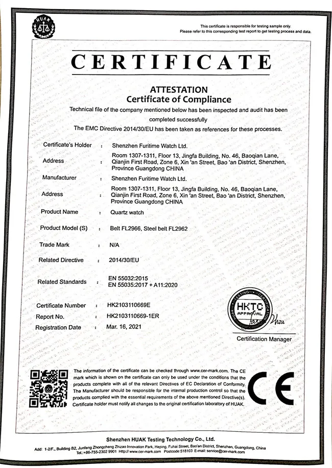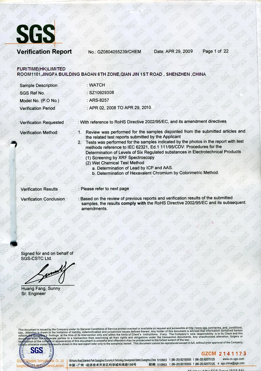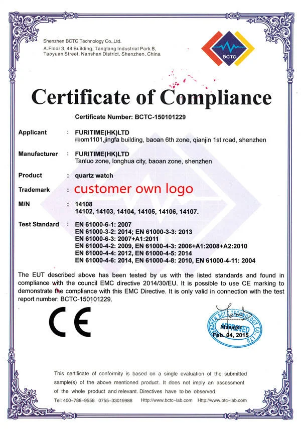 CE. RoHS. SGS. REACH. All watches is lead. cadmium & nickel free which can meet European & USA standard.