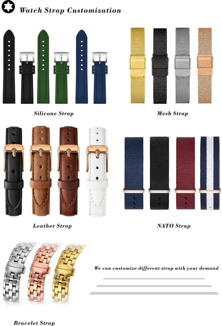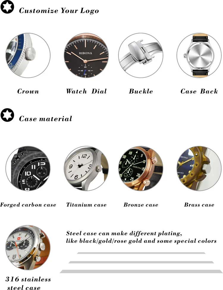 1. Your logo can be put on the dial. face . buckle or caseback;
