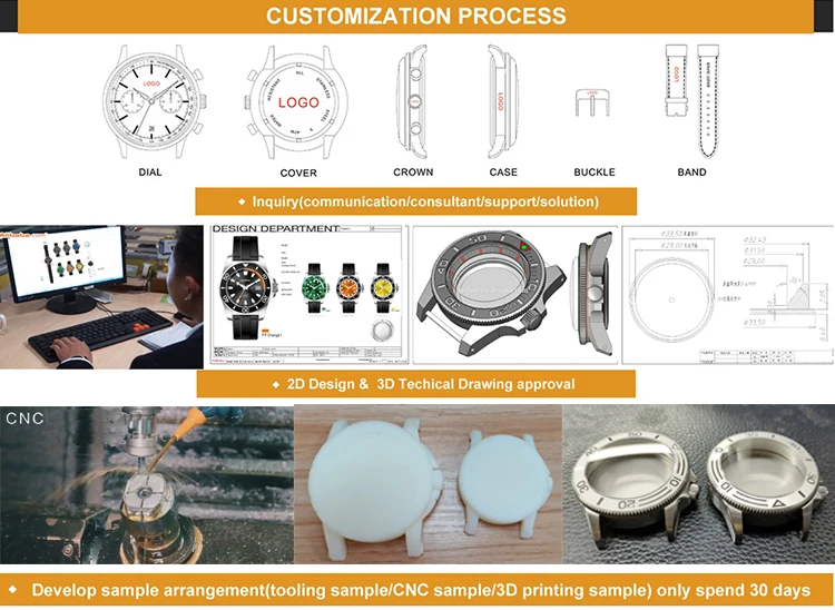 A: Yes. we can make the logo for you. Usually the logo can be marked on dial. case back. crown or best. depending on customers’needs.